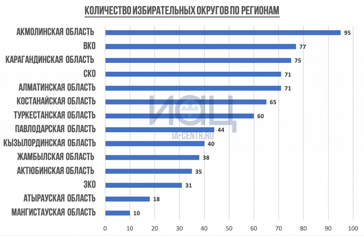 Всего в эту кампанию выборы проходили в 730 избирательных округах – самое большое количество округов в Акмолинской области, самое малое в Мангистауской. Разница составляет 9,5 раз. Соответственно, в зависимости от количества округов и ранжируется политическая значимость для конкретной области и прошедших выборов.