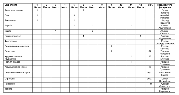 Результаты сборной Узбекистана на Олимпийских играх в Токио отличаются от достижений прежних лет. Всего по пяти летним олимпийским видам Узбекистан завоевал медали, еще пять сумели попасть в первую пятерку, девять – в первую десятку. Остальные федерации не попали в десятку и заняли места с 11 по 64.