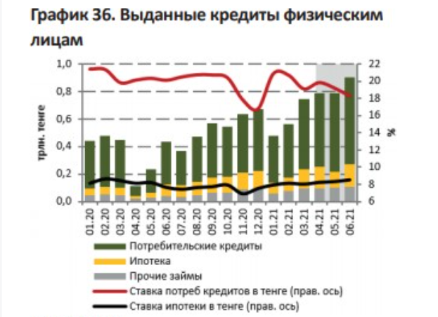 Объем новых выданных кредитов за второй квартал 2021 года составил 5,3 трлн тенге. Это в 1,7 раза превышает аналогичный период 2020. Но в том году сильно снизилась деловая активность, соответственно и кредиты мало кто брал. Новые же кредиты физическим лицам выросли в 3,2 раза по сравнению с аналогичным периодом 2020 года.