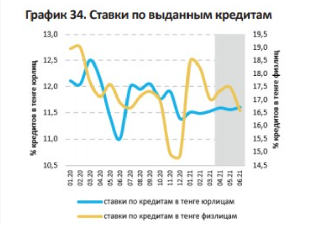 — Во втором квартале 2021 года динамика ставок по выданным кредитам в национальной валюте корпоративному сектору стабилизировалась на уровне 11,6%. Стоимость кредитов розничного сектора демонстрировала снижение, — отметили в Нацбанке.