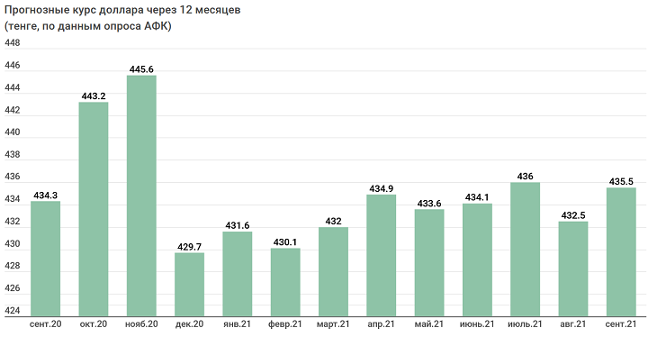«Потенциал для краткосрочного укрепления нацвалюты весьма ограничен. На горизонте 12 месяцев курс USDKZT вырастет на 2,3% относительно текущего курса (тек. 425,5). Средний курс по паре USDKZT через месяц – 425,8 тенге, через год – 435,5 тенге», — отмечают в АФК.