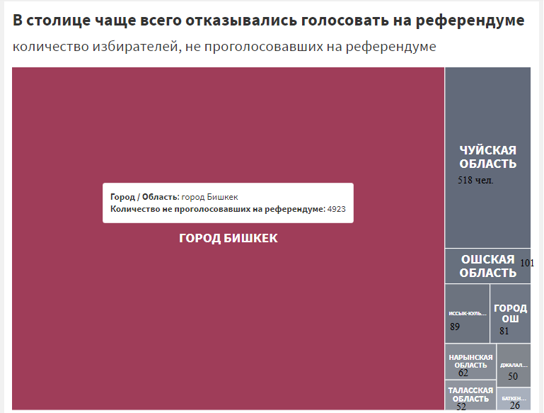 Неудивительно, что чаще всего от участия в референдуме отказывались в Бишкеке, меньше всего — в Баткенской области.