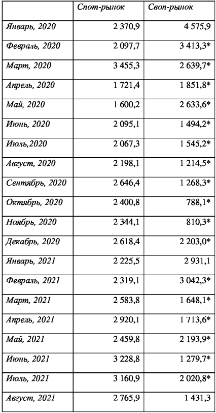 В текущем году месячные объемы на своп-рынке значительно колеблются, так что выраженного тренда здесь пока не наблюдается. По всей видимости, банки просто опасаются занимать деньги друг другу на бирже.