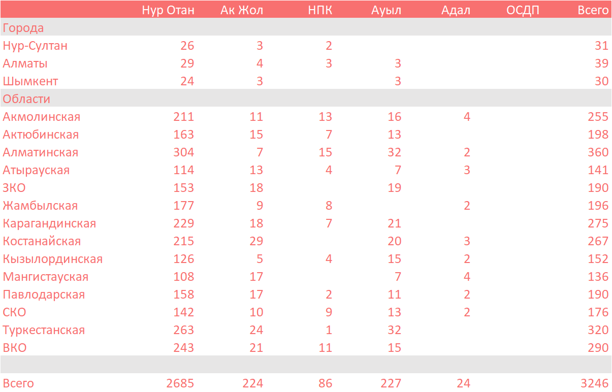 Таблица 1. Состав маслихатов по итогам выборов 2021 года.