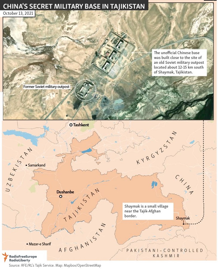 На днях власти Таджикистана заявили, что Китай построит базу в пограничной с Афганистаном и Китаем Горно-Бадахшанской автономной области, но принадлежать она будет спецназу УБОП МВД Таджикистана. По информации первого замминистра внутренних дел Таджикистана Абдурахмона Аламшозода, базу построят в населённом пункте Вахан Ишкашимского района.