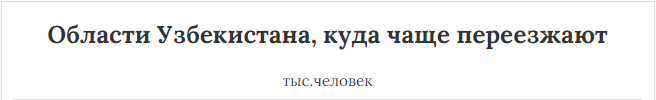Регион — рекордсмен по численности выбывания — Ташкентская область. Область ближайшая к столице, основной поток миграции увеличился после отмены процедуры «прописки» в Ташкенте для граждан страны.