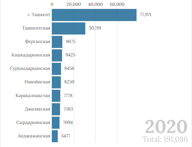 К 2020 году бум выбывания перешел к Кашкадарьинской и Ташкентской областям.
