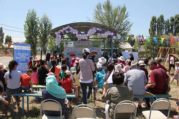 Иллюстрация 1: LED освещение в ж/м. Рухий-Мурас (справа, фото автора); открытие «общественной сцены для общения» в ж/м. Эне-Сай (слева, фото из Фейсбук страницы ЮНФПА в Кыргызстане)