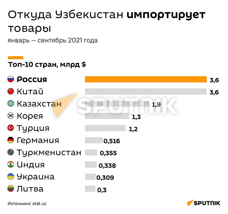 При этом у России Узбекистан закупил продукцию на $3,6 млрд. Это машины, оборудование, древесина, товары химической промышленности и минеральные продукты.