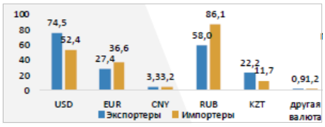 А экспортеры в расчетах с зарубежными партнерами чаще используют американский доллар – об этом заявили 74,5% опрошенных. Кроме доллара, во внешнеторговых расчетах предприятиями используются британский фунт стерлингов, швейцарский франк, киргизский сом и турецкая лира.