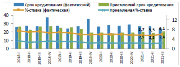 Как следует из данных очередного конъюнктурного опроса Нацбанком предприятий реального сектора экономики, приемлемые для предприятий ставки вознаграждения по кредитам значительно отличаются от фактических.