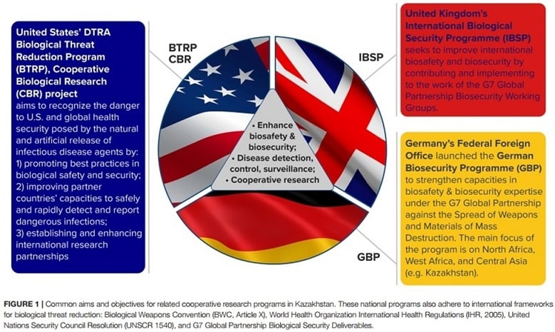 Помимо США в Казахстане, оказывается, активно действовали военные биологи из ФРГ и Великобритании в рамках программ исследований наиболее опасных патогенов и данное сотрудничество активно продолжается.