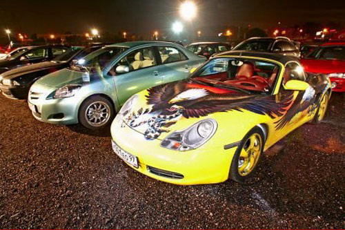 Для тех же, кто хотел более спокойного досуга, напротив АУЦА расположилась скромная выставка ретро-автомобилей, из которых выделялись легендарный красный «Фольксваген Жук», «Кадиллак» небесного цвета и черный «Запорожец» с шипованной крышей. Рядом, окружённые мусором, выброшенным посетителями мероприятия, припарковались дорогие, тюнингованные, спортивные авто с аэрографией и мотоциклы. На них при вежливом подходе к владельцам можно было не только сфотографироваться, но и покататься. А неподалёку, перекрывая выступление на сцене ведущих и деятелей кыргызского КВН, проходили состязания по автозвуку среди любителей громкой музыки. Словом, каждый посетитель автомегафестиваля мог найти для себя что-то своё.