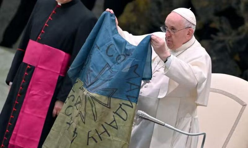 Франциск неоднократно поднимал тему войны на Украине, хотя он сравнил НАТО с собаками, лающими у ворот России, а в интервью LaCiviltà Cattolica высказался о войне так неоднозначно, что возбудил гнев украинства: политолог Небоженко назвал позицию папы хитрой гибридной политикой Ватикана, а журналист Егор Чечеринда обвинил папу в связях с ФСБ (могли б еще и на "Миротворец" занести).
