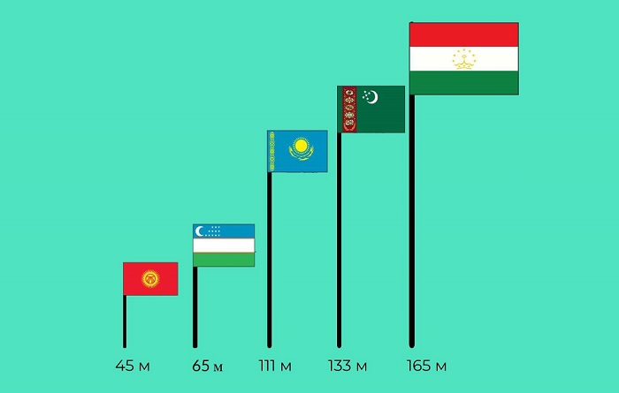 Касаемо соседей. В 2011 году на 165-метровую мачту был поднят Государственный триколор Таджикистана. Установленное в Душанбе сооружение попало в Книгу рекордов Гиннеса и считалось самым высоким в мире до сдачи в эксплуатацию флагштока в Саудовской Аравии высотой свыше 170 метров.