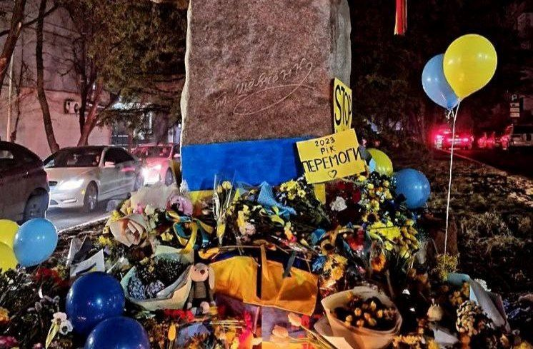 В связи с тем, что акции в Алма-Ате были запрещены, противники России стали нести цветы и свечи к памятнику Тарасу Шевченко в начале одноименной улицы. Людей было не так много, как ожидалось, но они были.