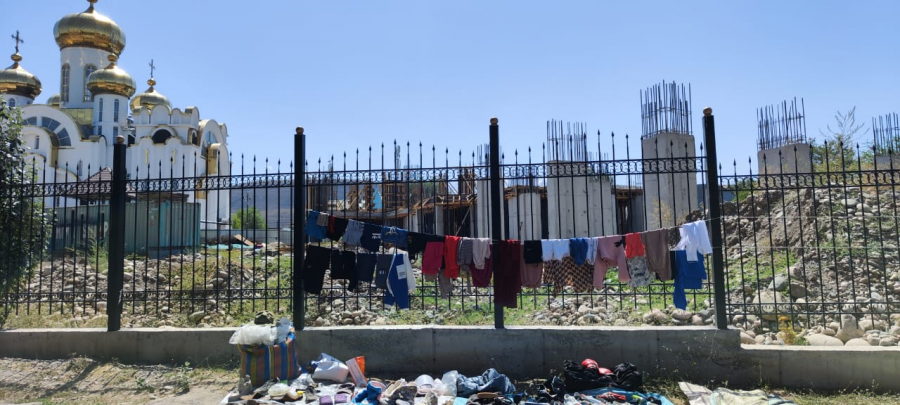 На справедливо заданные вопросы представителями храма, что происходит, сотрудник МТУ ответил, что в связи с ремонтом тротуара и строительством торгового центра по улице Юнусалиева стихийщикам негде торговать, и было принято решение, что барахолка отныне будет здесь – на территории гостевой парковки православной церкви.