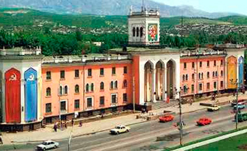 На снимке: крупнейший в Средней Азии многопрофильный лечебный центр РКБ № 3 им. А.М.Дьякова на 1200 коек. Архитектор - Д.Д.Гендлин. Были учтены все требования больничной технологии, климатические и сейсмические особенности столицы республики. Архитектура здания решена в прогрессивных конструкциях того времени, лечебные корпуса соединены между собой подземным переходом. Уже в 1964 году были установлены системы автономного жизнеобеспечения, которые позволяли проводить необходимые мероприятия в безостановочном режиме даже в случае аварийной остановки центральных систем. РКБ входила в десятку лучших медицинских центров СССР по оснащению медицинским оборудованием, подбору медицинских кадров и, конечно же, совершенно бесплатным медицинским обслуживанием. Прошло 20 лет после развала СССР, но ничего подобного в нашем городе так и не построено, хотя и строят много. И ещё очень стыдно, что имя первого наркома здравоохранения Советского Таджикистана Алексея Михайловича Дьякова, русского врача и ученого, присвоенное в советские годы РКБ №3, недавно было тихо убрано из названия больницы.