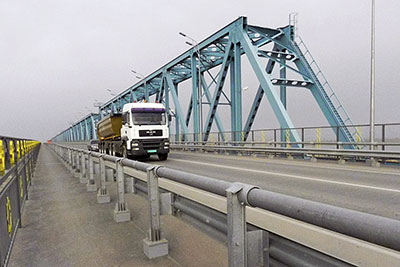 Мост построен рядом с железнодорожным «собратом», введенным в эксплуатацию на четыре года раньше, и издали сливается с ним, ведь высота над поверхностью воды обоих настилов практически одинаковая, позволяющая свободно проходить судам. На расстоянии, прежде всего, бросаются в глаза синие металлические пролеты старшего по возрасту и, разумеется, более масштабного сооружения. Когда же подъезжаешь ближе, то и транспортный коридор для машин всех марок, возведенный украинскими и отечественными строителями, тоже поражает своим инженерным решением.