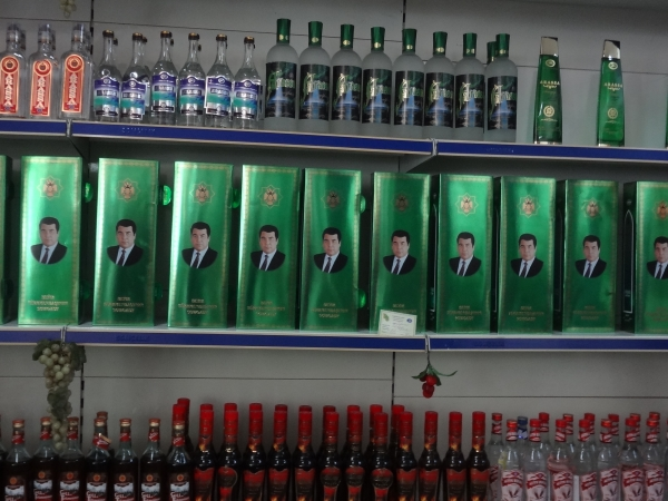 Видимо, чтобы застолбить выгоду из существующего спроса, имя и лицо бывшего президента Сапармурата Ниязова – который дал себе неформальный титул Отца всех туркмен – проглядывается сквозь новый зеленый пакет у недавно запущенной марки водки. Она называется «Подарок от Туркменбаши Великого».