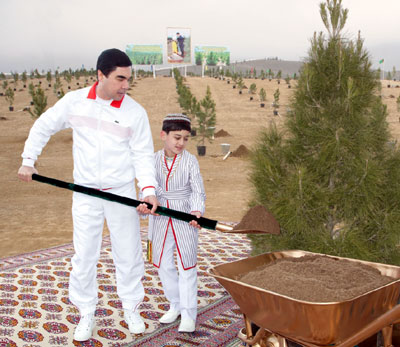В ознаменование окончания месячника «Здоровья и счастья» президент Туркменистана вместе с внуком совершил восхождение по Тропе здоровья.