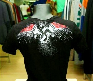 После скандала появление в магазинах майки с эмблемой Третьего рейха продавцы поспешили убрать с прилавков.